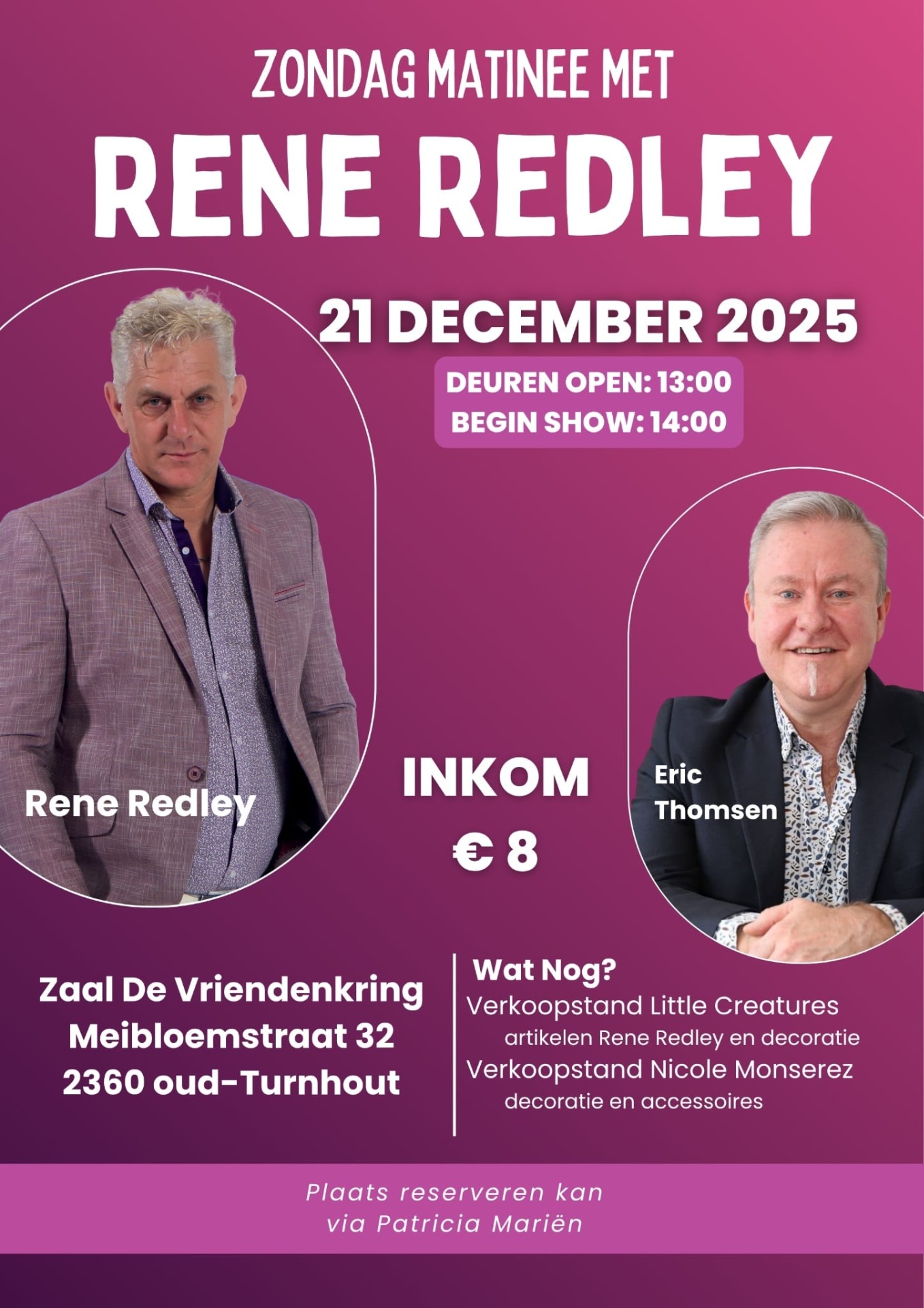 VOOR INLICHTINGEN EN KAARTEN , NEEM CONTACT OP MET ERIC THOMSEN 0477/224634